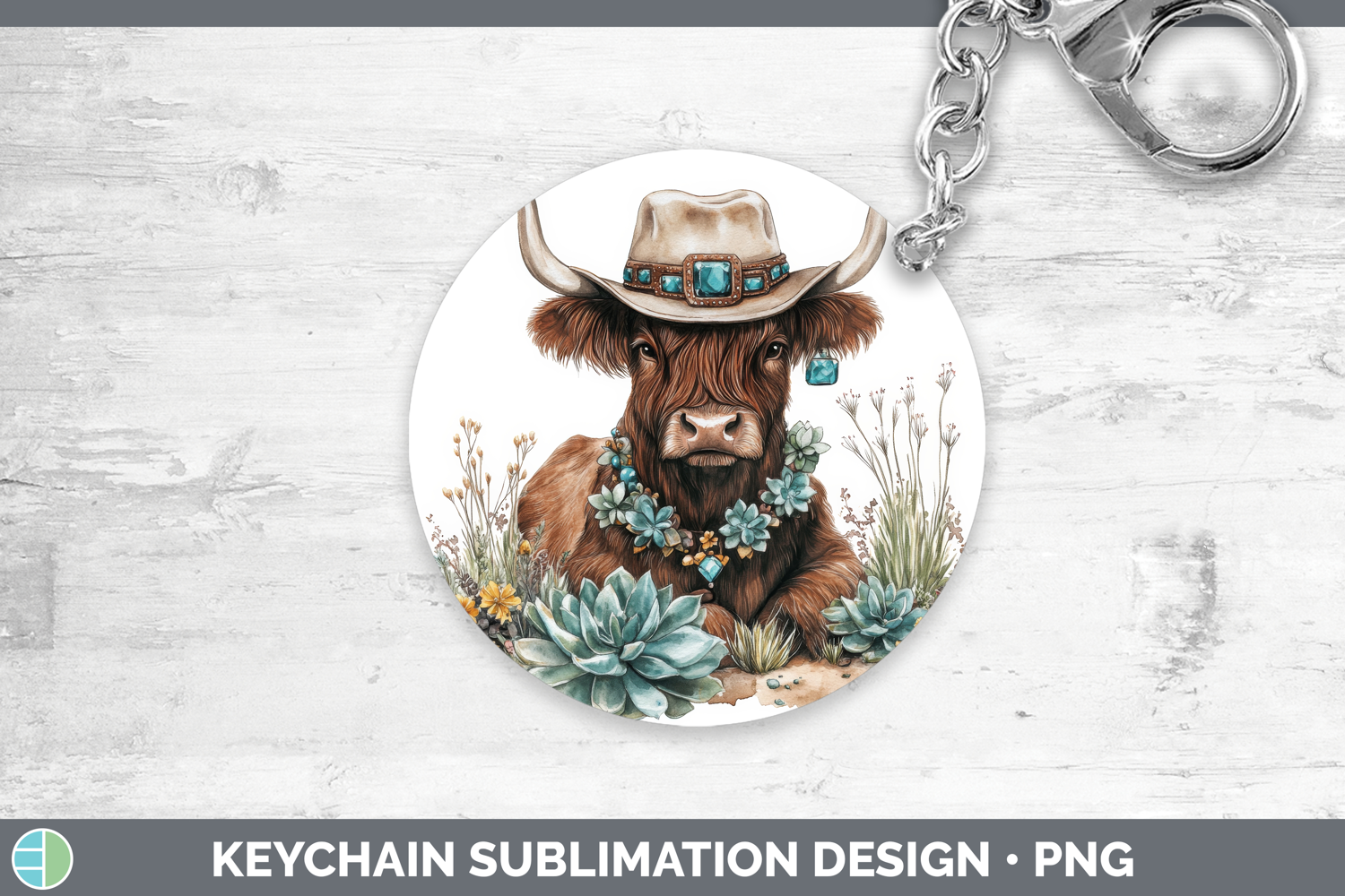 Highland Cow Keychain Farm Western Teal Sublimation Keyring