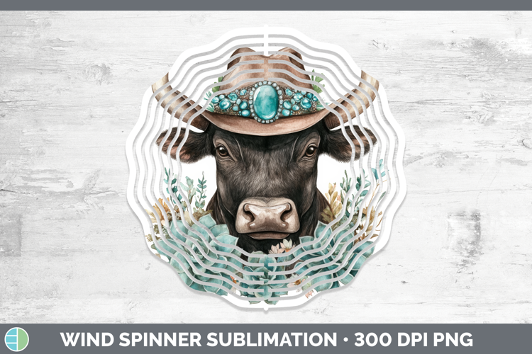 Bull Wind Spinner Farm Western Teal Sublimation Spinner Desi