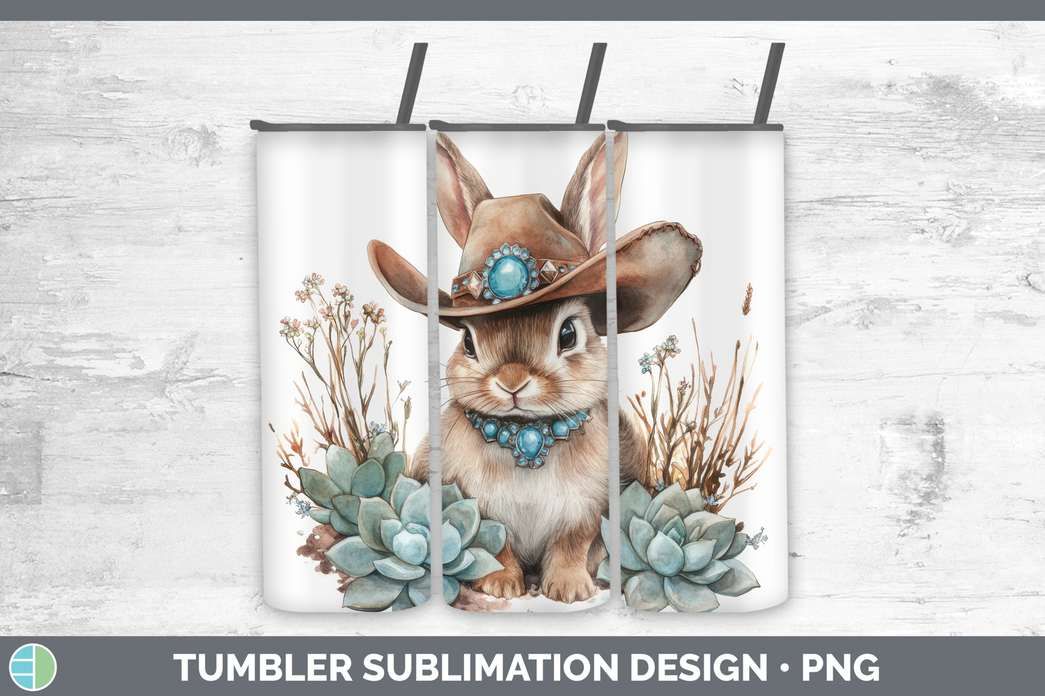 Similar Design Products to Bunny Tumbler Farm Western Teal Sublimation 20 oz Skinny Tum