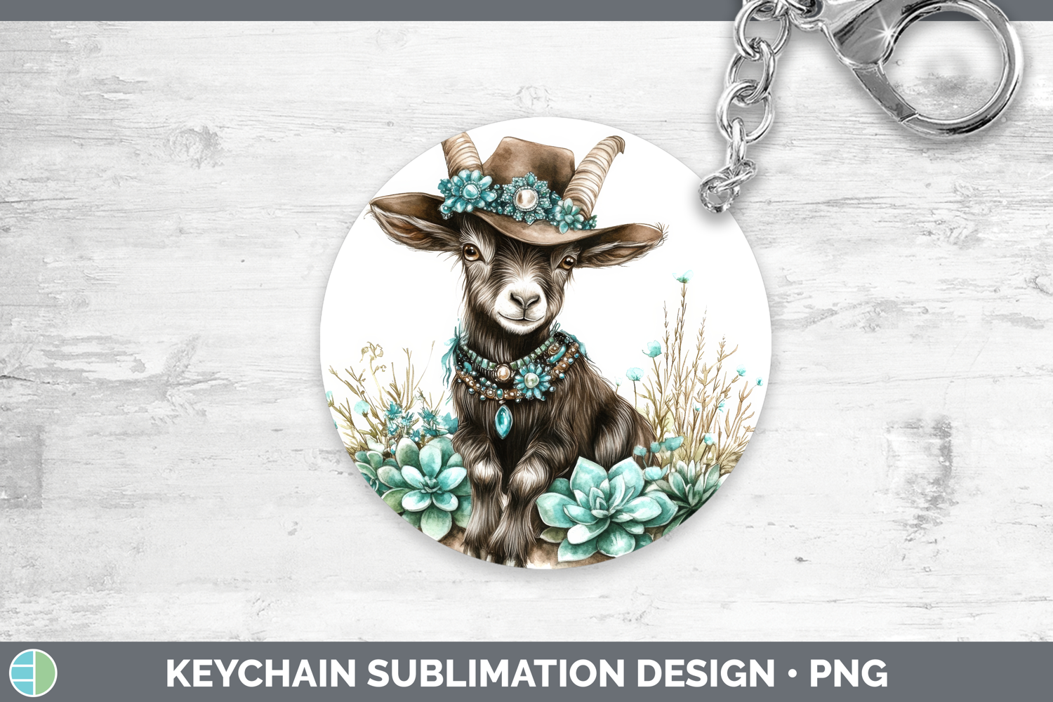 Goat Keychain Farm Western Teal Sublimation Keyring Designs