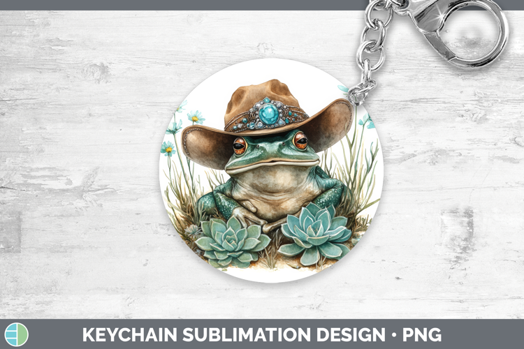 Bullfrog Keychain Farm Western Teal Sublimation Keyring Desi