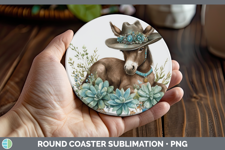 Mule Round Coaster Farm Western Teal Sublimation Coaster Des