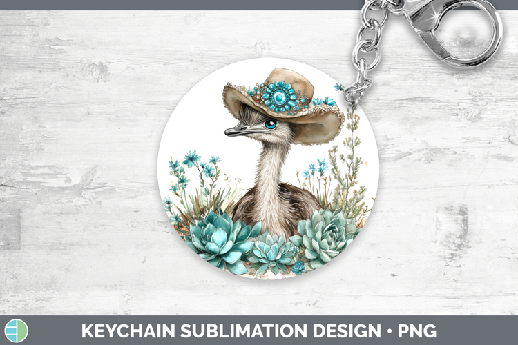 Emu Keychain Farm Western Teal Sublimation Keyring Designs
