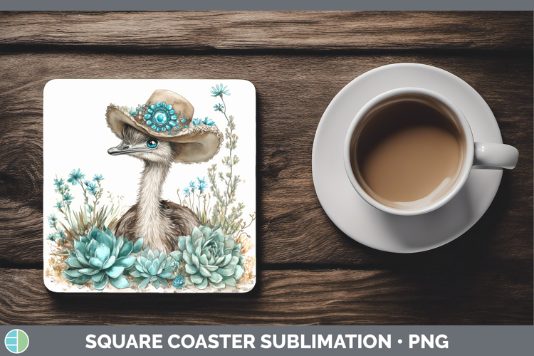 Emu Square Coaster Farm Western Teal Sublimation Coaster Des
