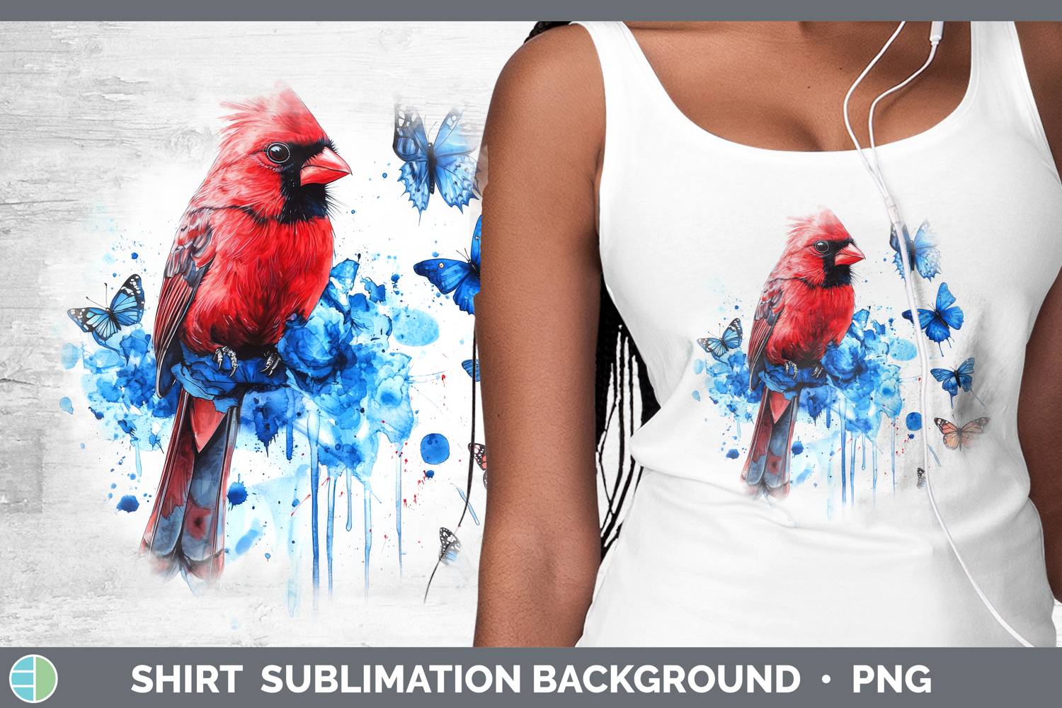 Cardinal Shirt Birds 01 Blue Drips Sublimation Background De