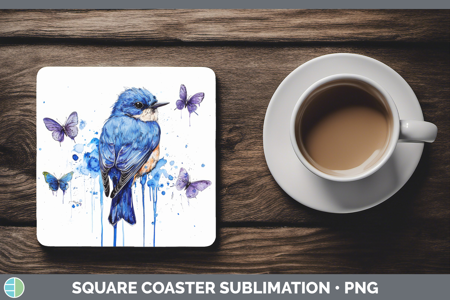 Eastern Bluebird Square Coaster Birds 01 Blue Drips Sublimat