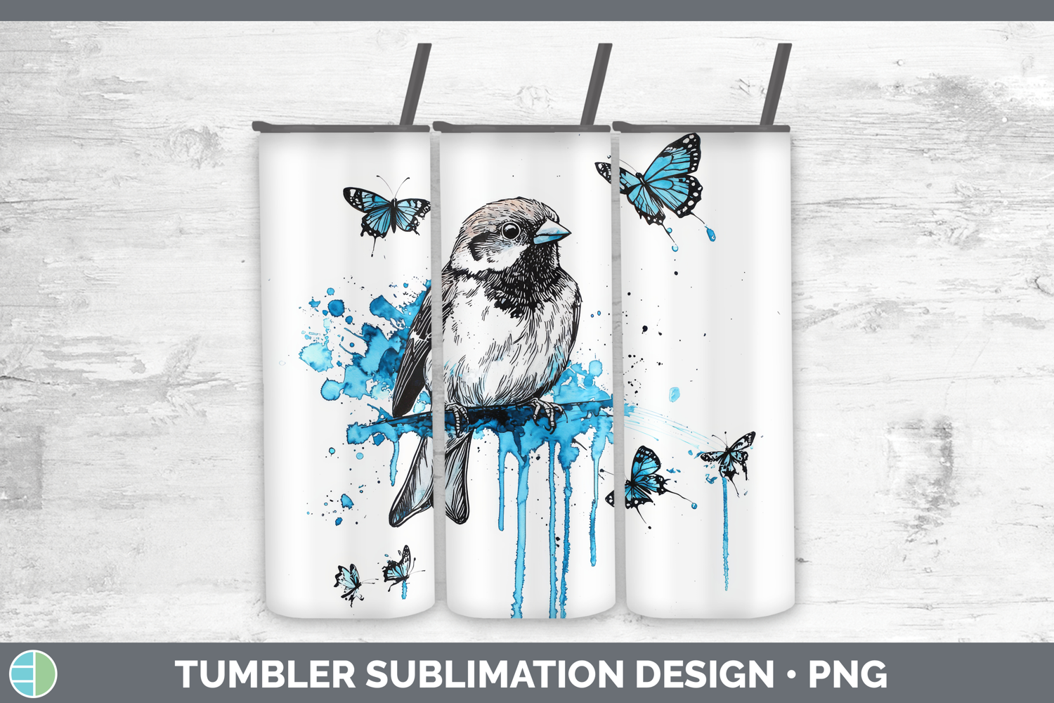 Similar Design Products to Sparrow Tumbler Birds 01 Blue Drips Sublimation 20 oz Skinny