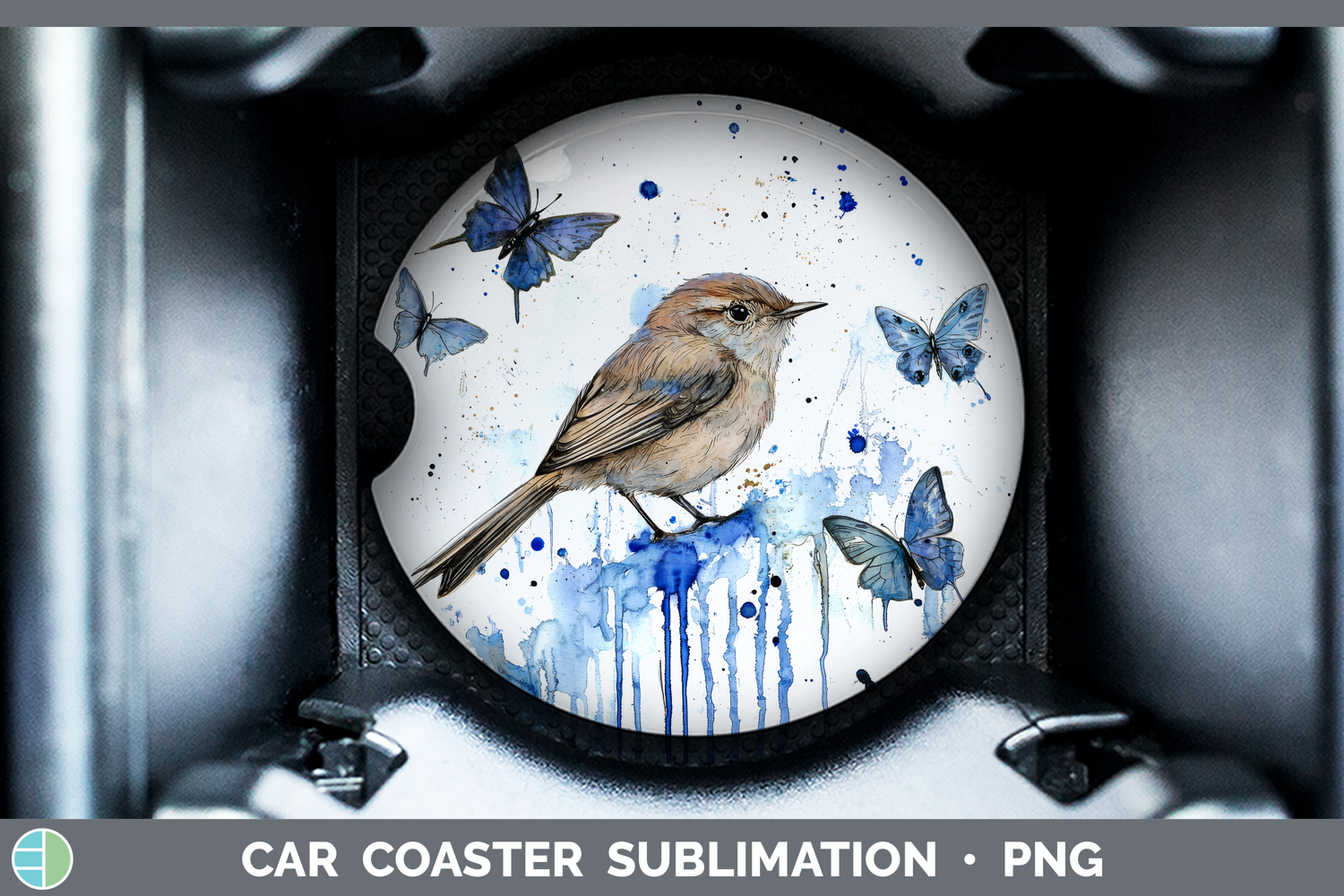 Wren Car Coaster Birds 01 Blue Drips Sublimation Designs