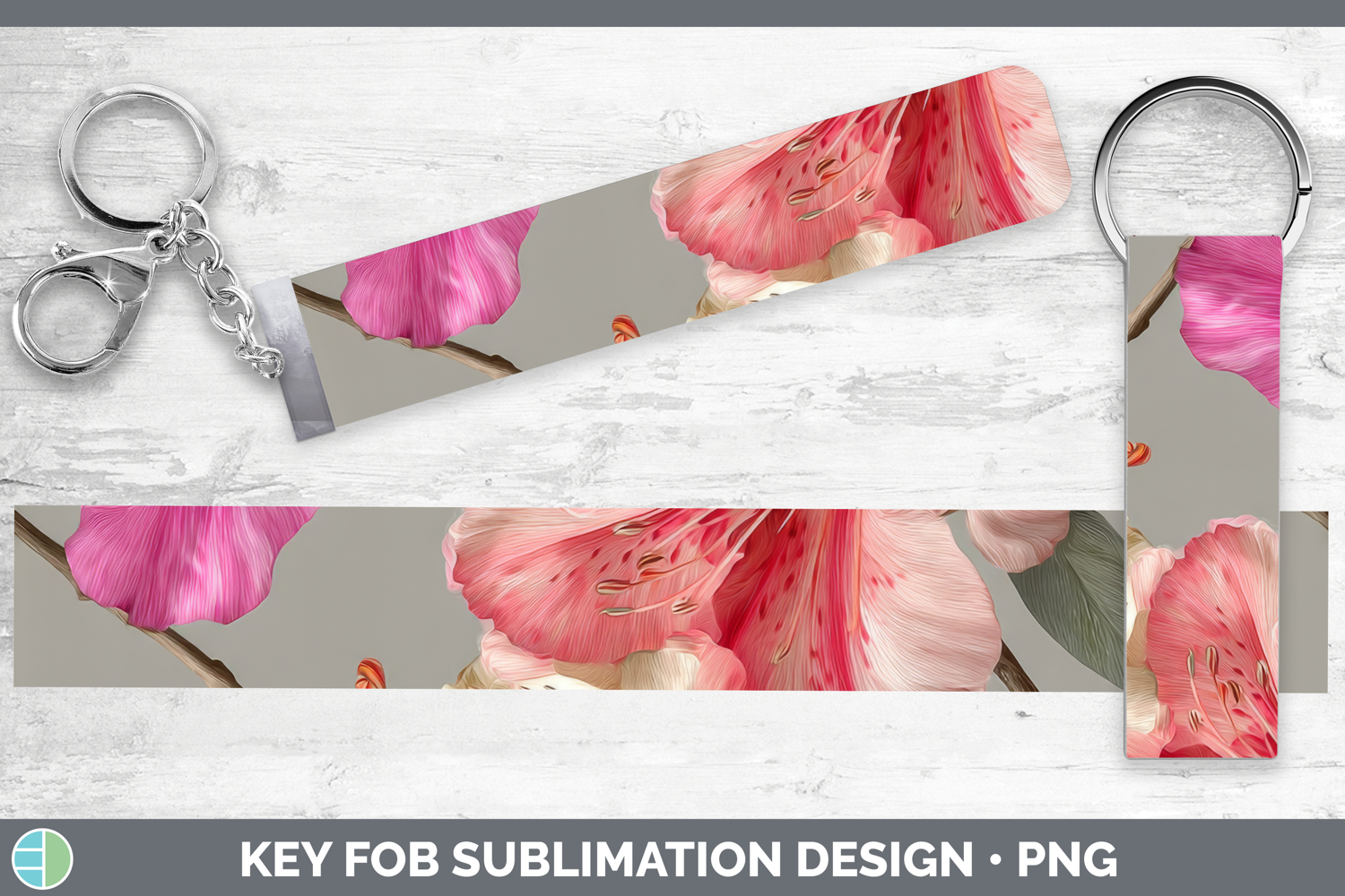 Azalea Key Fob Flowers 01 Pretty Sublimation Wristlet Design