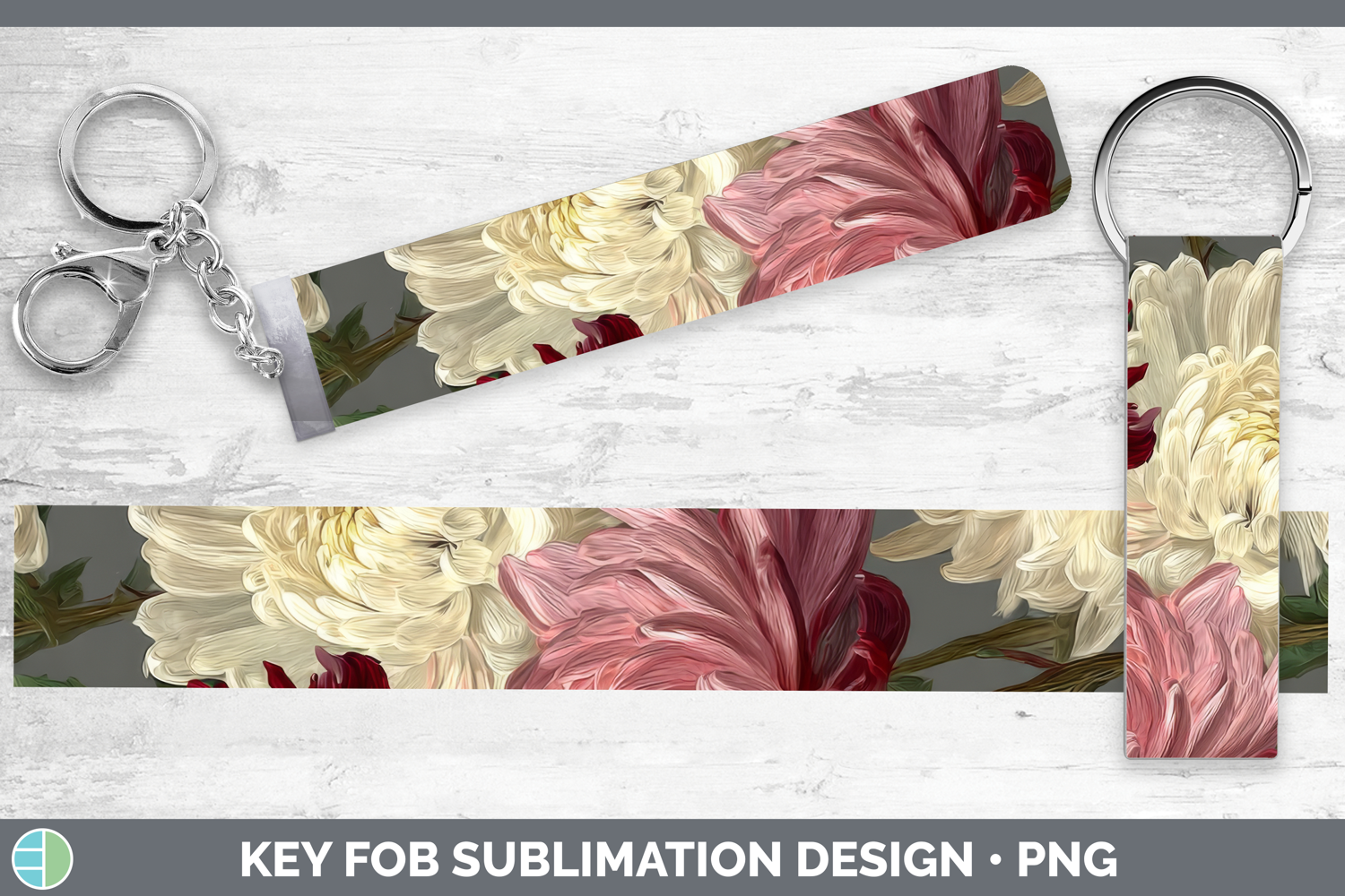 Chrysanthemum Key Fob Flowers 01 Pretty Sublimation Wristlet