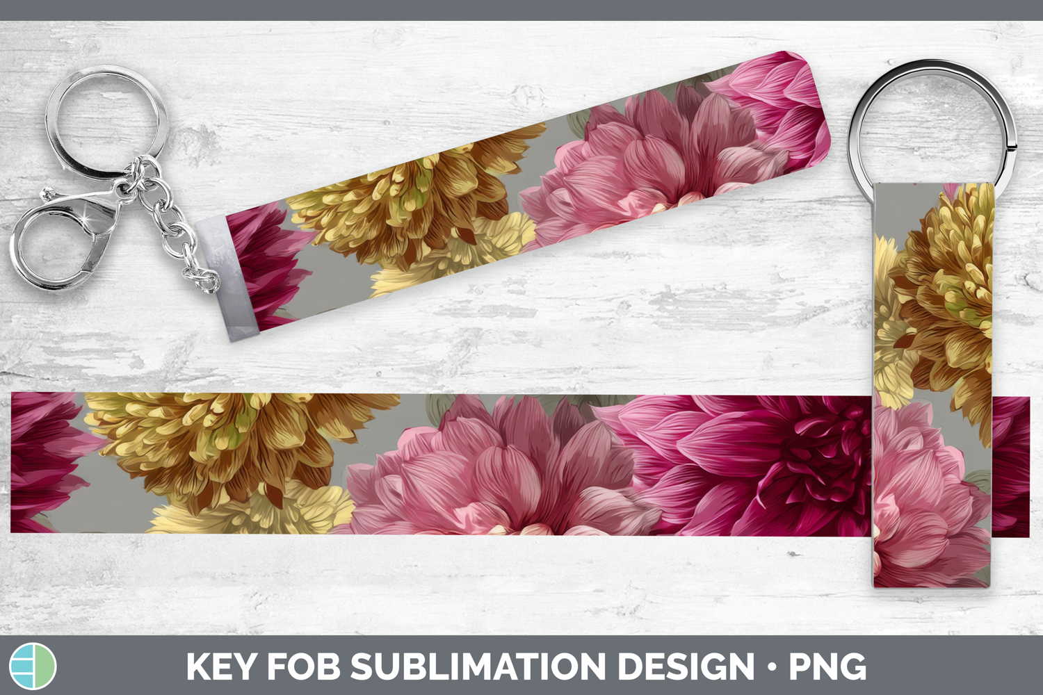Dahlia Key Fob Flowers 01 Pretty Sublimation Wristlet Design