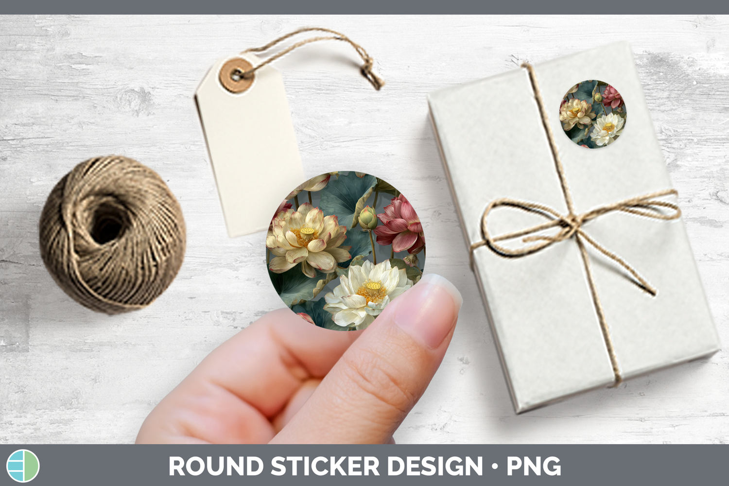 Flowers 01 Pretty Lotus Stickers | Round Labels Designs