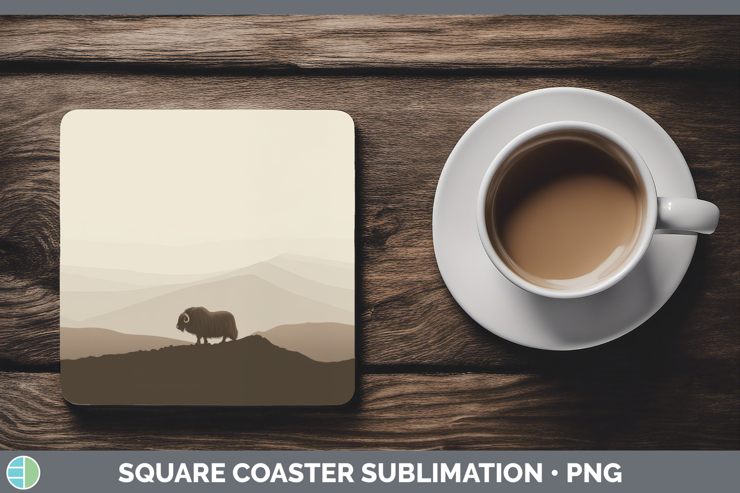 Similar Design Products to Musk Ox Square Coaster Woodland Silhouette Sublimation Coast