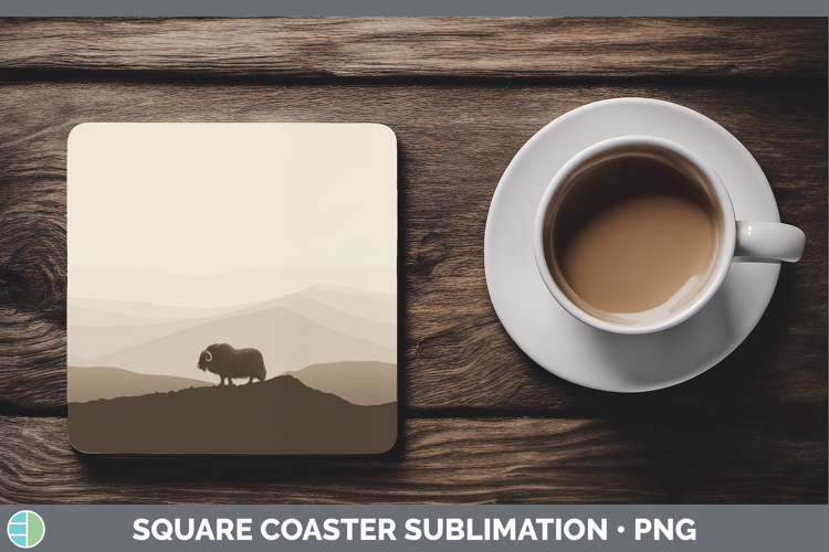 Musk Ox Square Coaster Woodland Silhouette Sublimation Coast