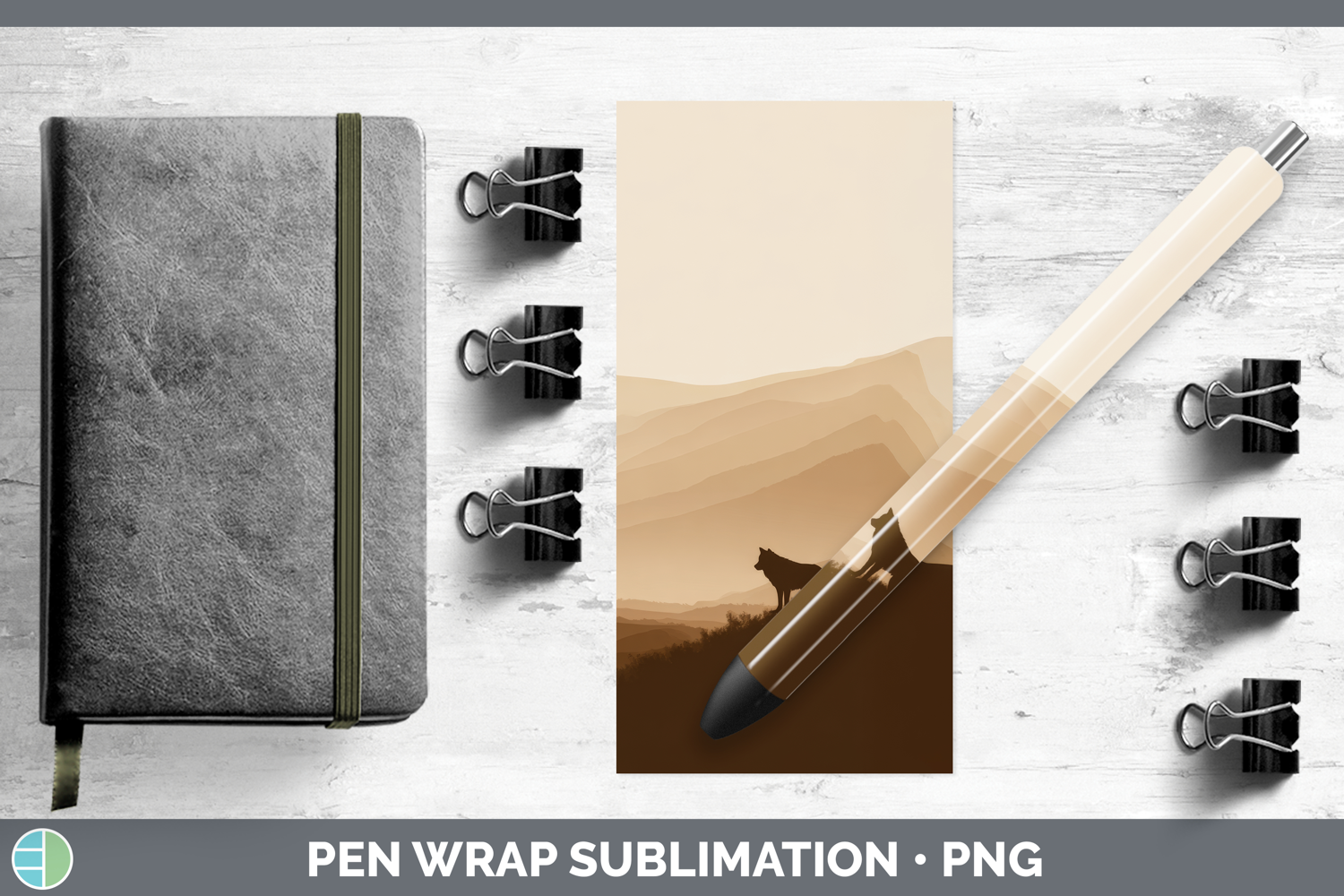 Wolf Pen Wrap Woodland Silhouette Sublimation Pen Designs