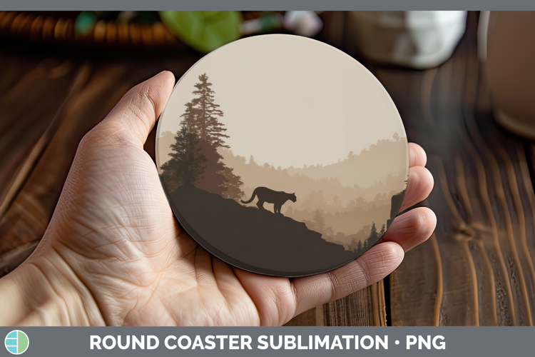 Cougar Round Coaster Woodland Silhouette Sublimation Coaster