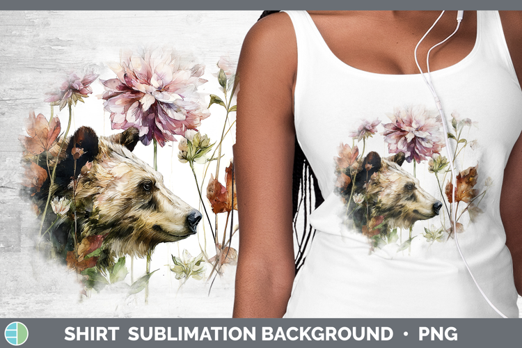 Bear Shirt Animals Autumn Floral Sublimation Background Des
