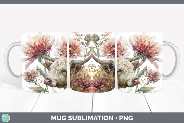Highland Cow Mug Wrap Animals Autumn Floral Sublimation Cof