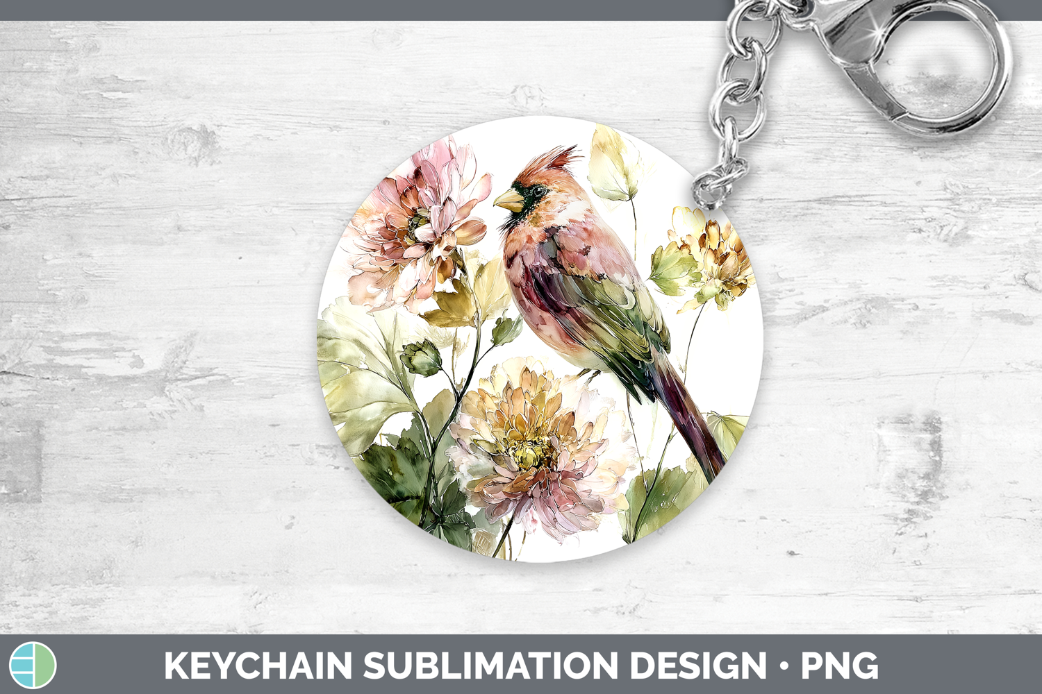 Cardinal Keychain Animals Autumn Floral Sublimation Keyring