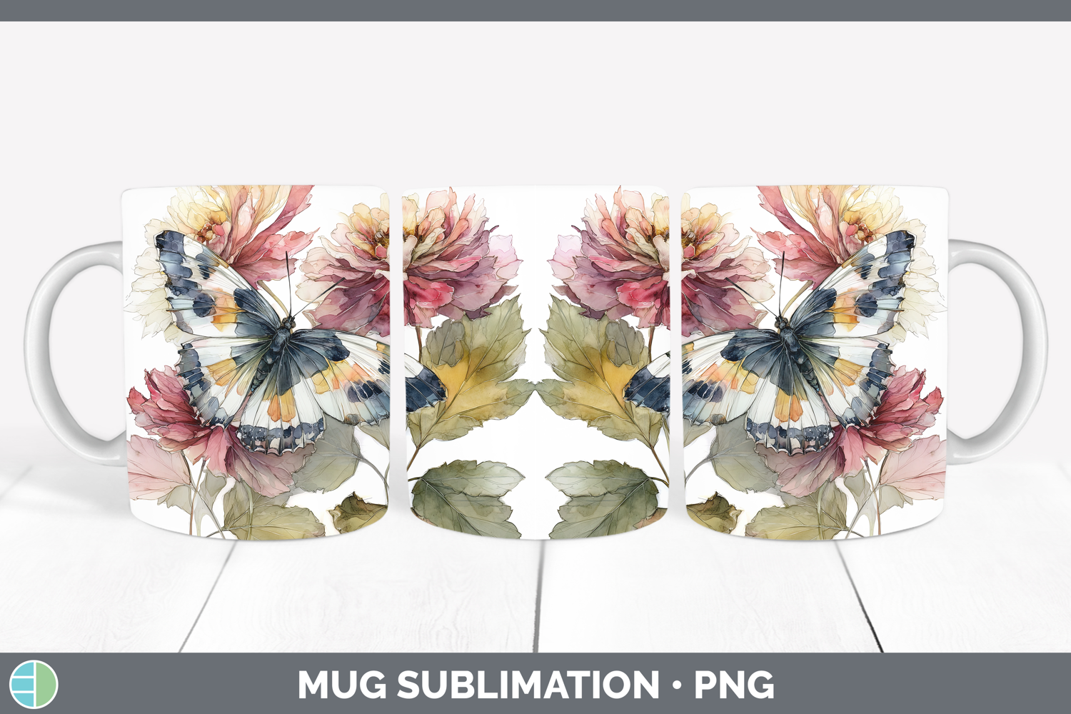 Butterfly Mug Wrap Animals Autumn Floral Sublimation Coffee