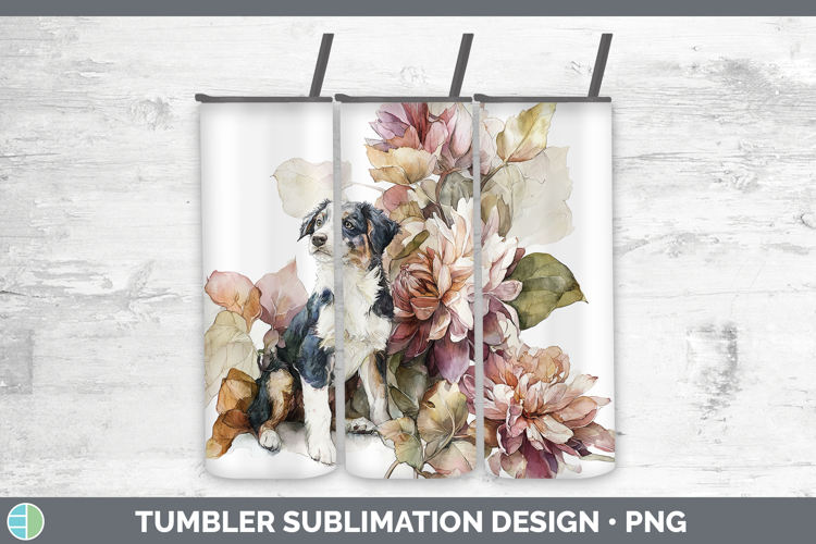 Puppy Tumbler Animals Autumn Floral Sublimation 20 oz Skinn