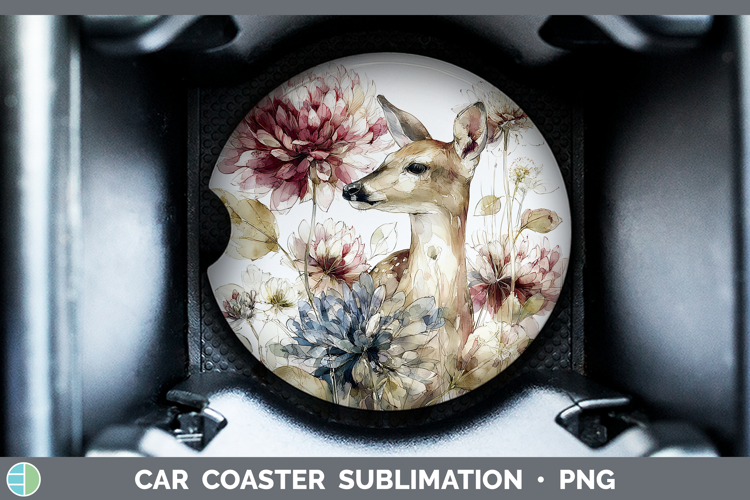 Deer Car Coaster Animals Autumn Floral Sublimation Designs