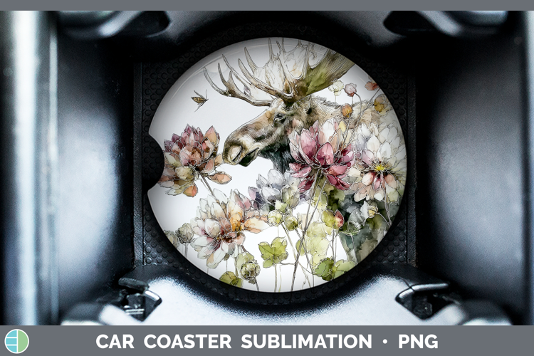 Moose Car Coaster Animals Autumn Floral Sublimation Design