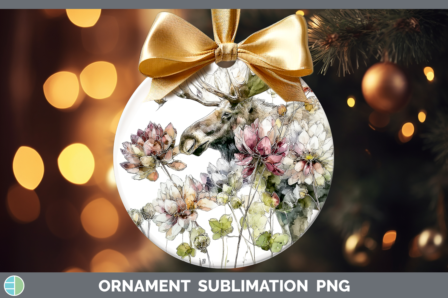Moose Ornament Animals Autumn Floral Sublimation Bauble Des