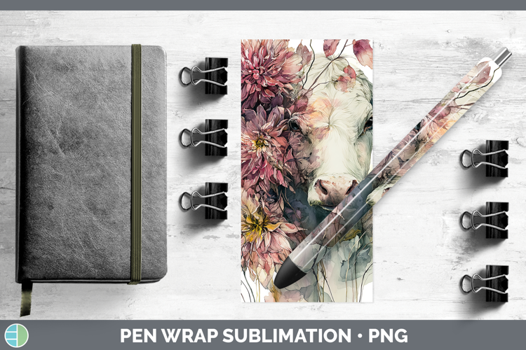 Cow Pen Wrap Animals Autumn Floral Sublimation Pen Designs