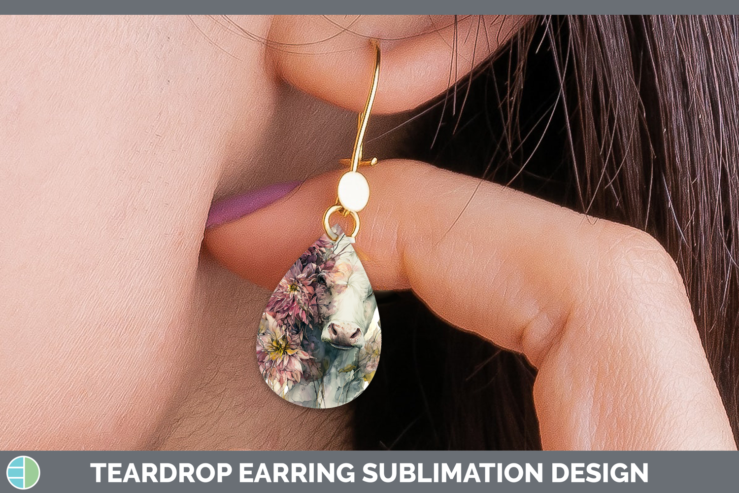 Cow Teardrop Earrings Animals Autumn Floral Sublimation Ear