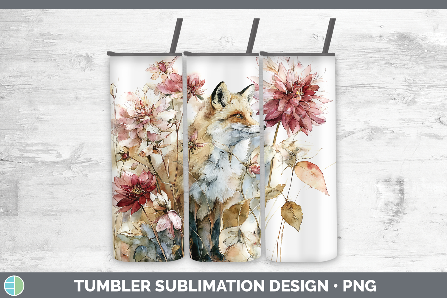 Fox Tumbler Animals Autumn Floral Sublimation 20 oz Skinny