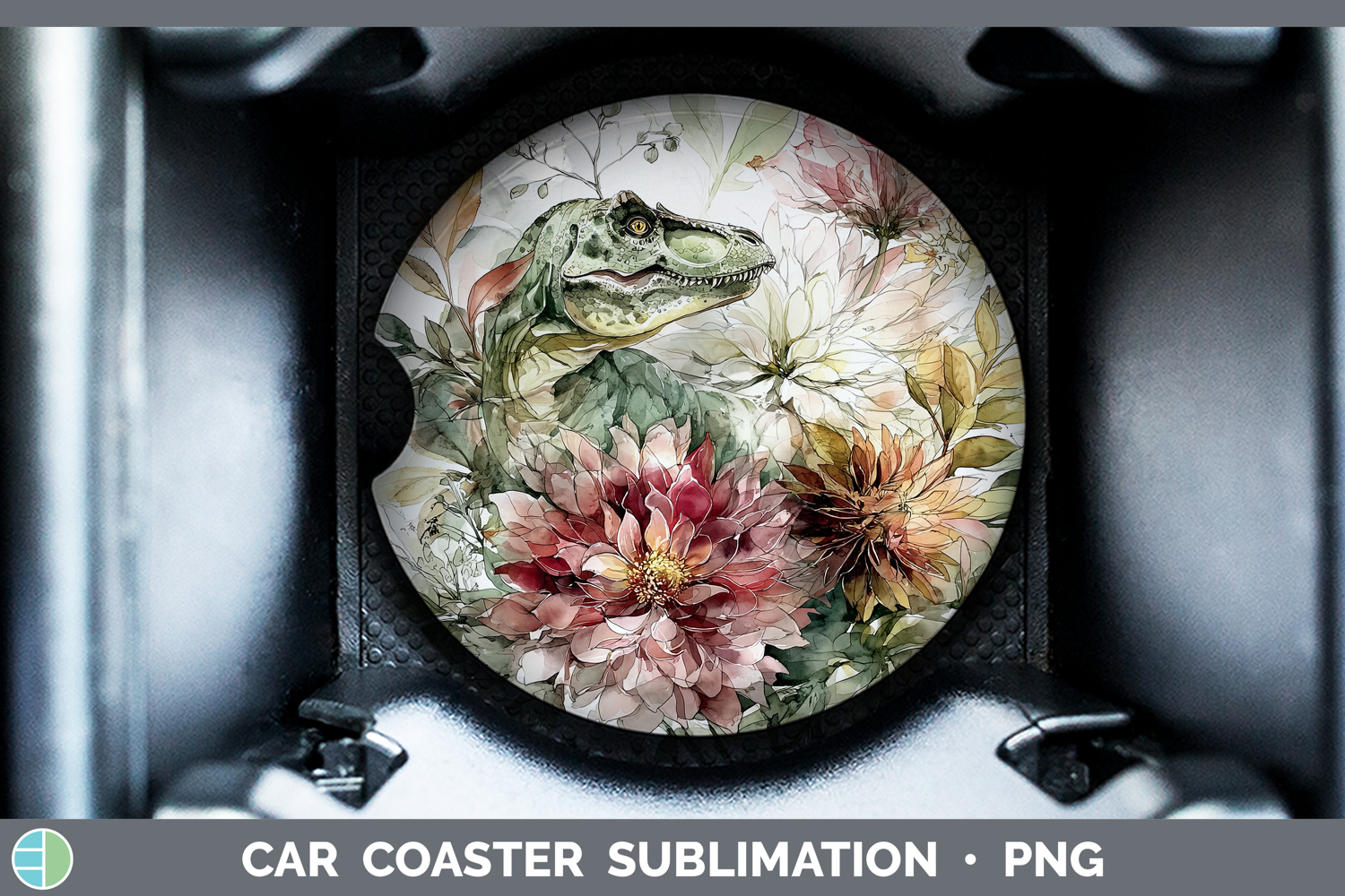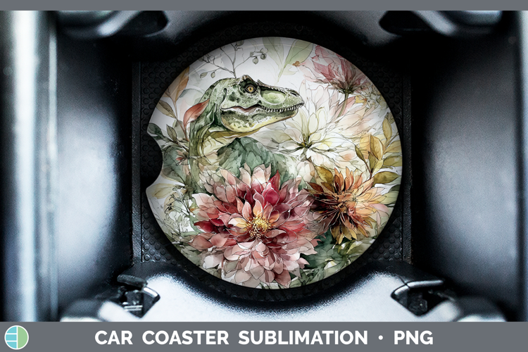 Dinosaur Car Coaster Animals Autumn Floral Sublimation Des