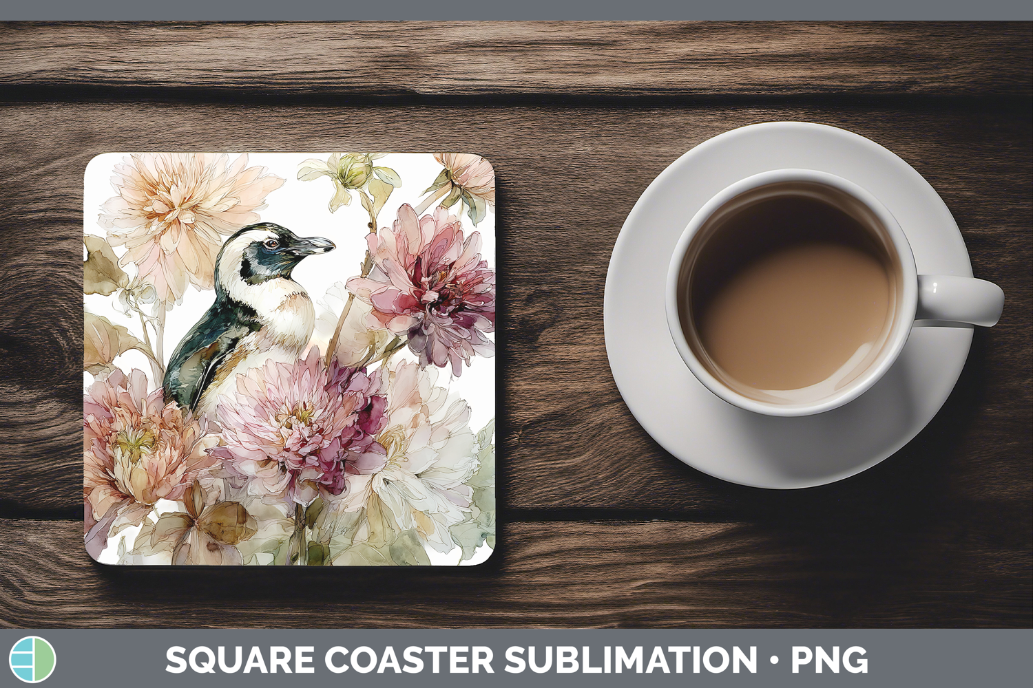 Similar Design Products to Penguin Square Coaster Animals Autumn Floral Sublimation Co