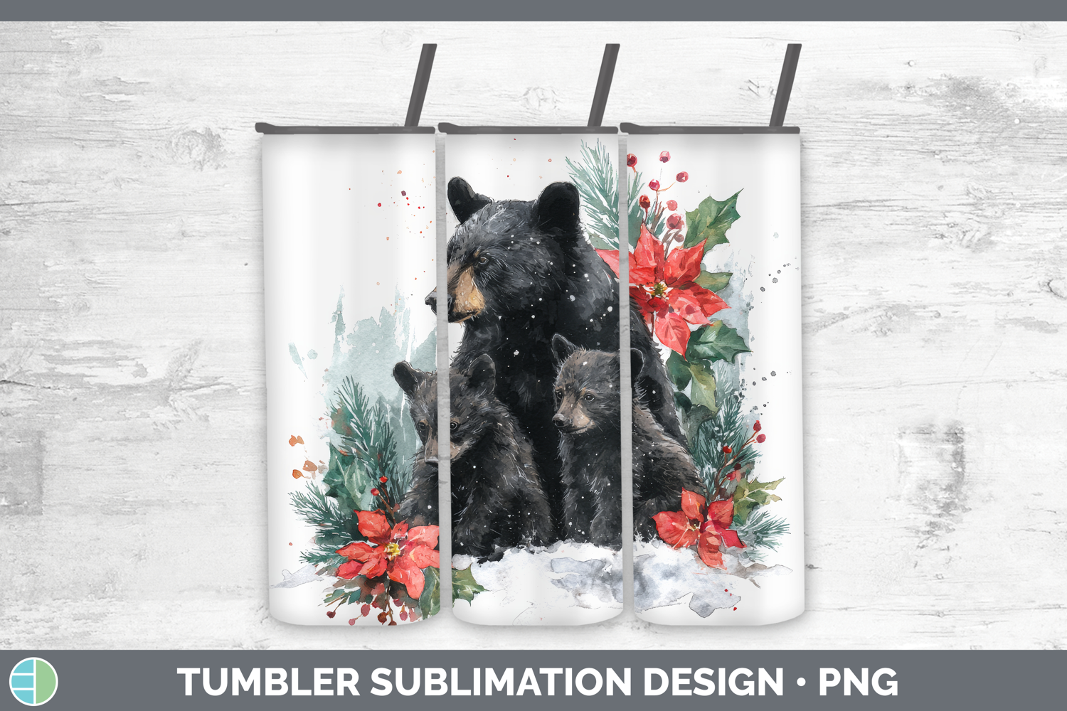 Black Bear Tumbler Woodland Christmas Poinsettia Sublimation