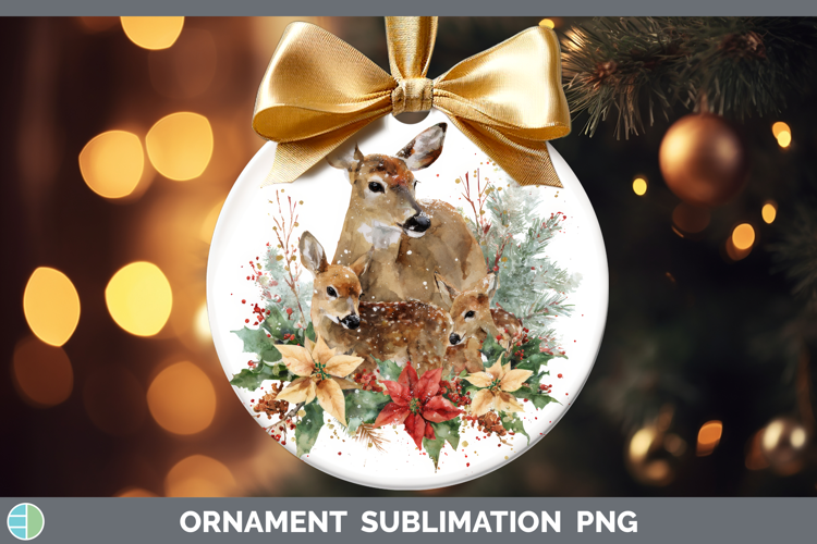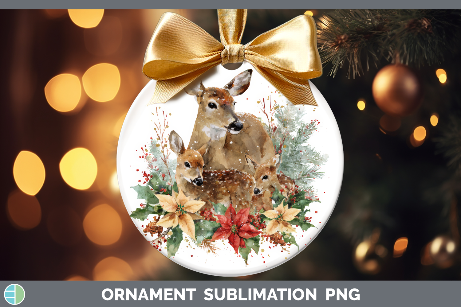 Deer Ornament Woodland Christmas Poinsettia Sublimation Baub