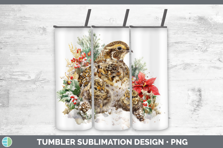 Grouse Tumbler Woodland Christmas Poinsettia Sublimation 20