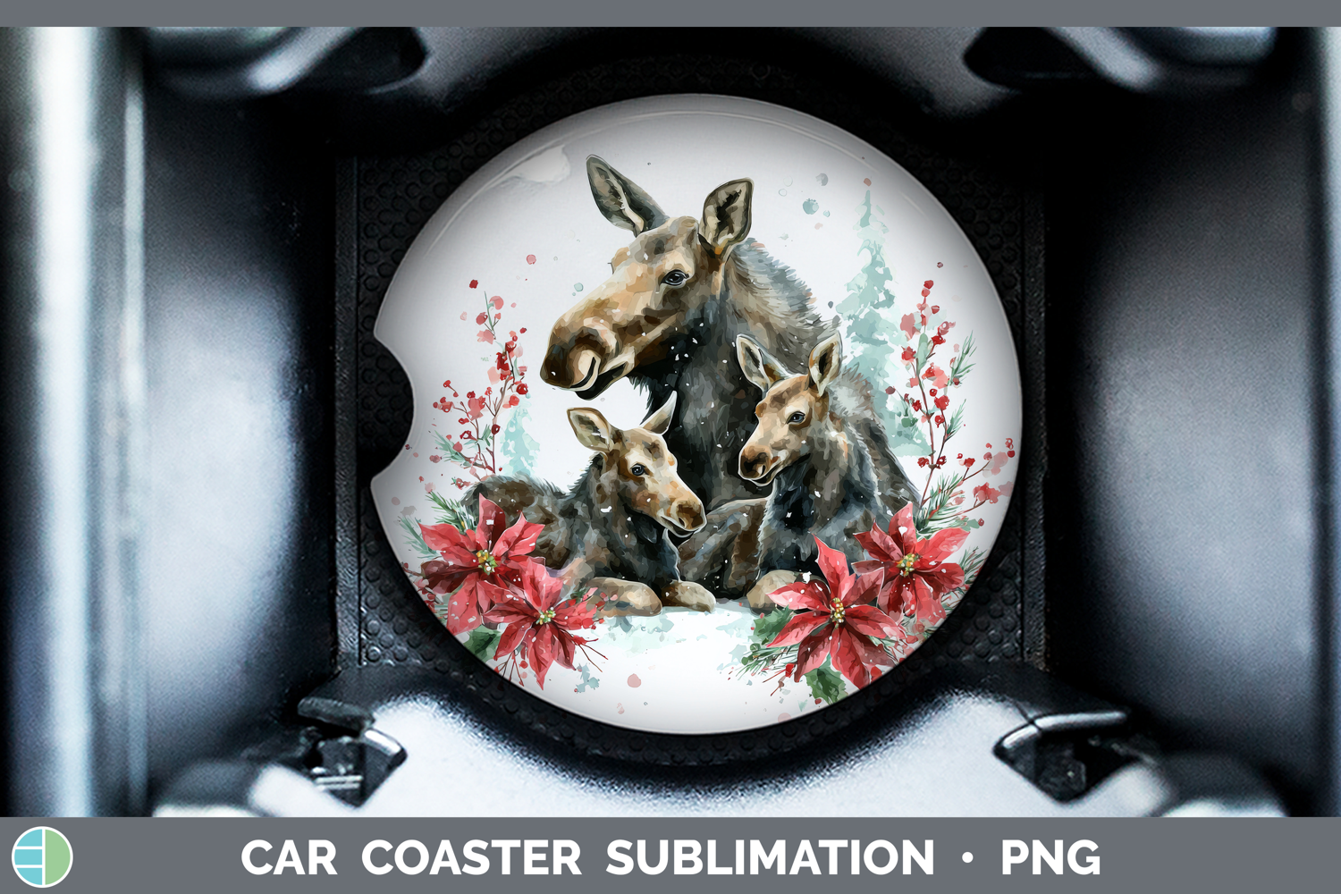 Moose Car Coaster Woodland Christmas Poinsettia Sublimation