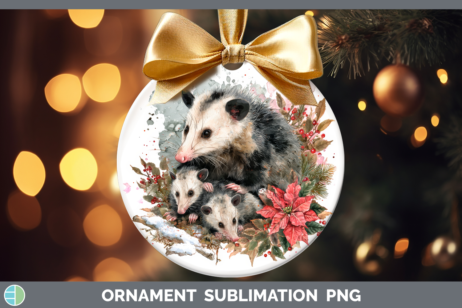Opossum Ornament Woodland Christmas Poinsettia Sublimation B