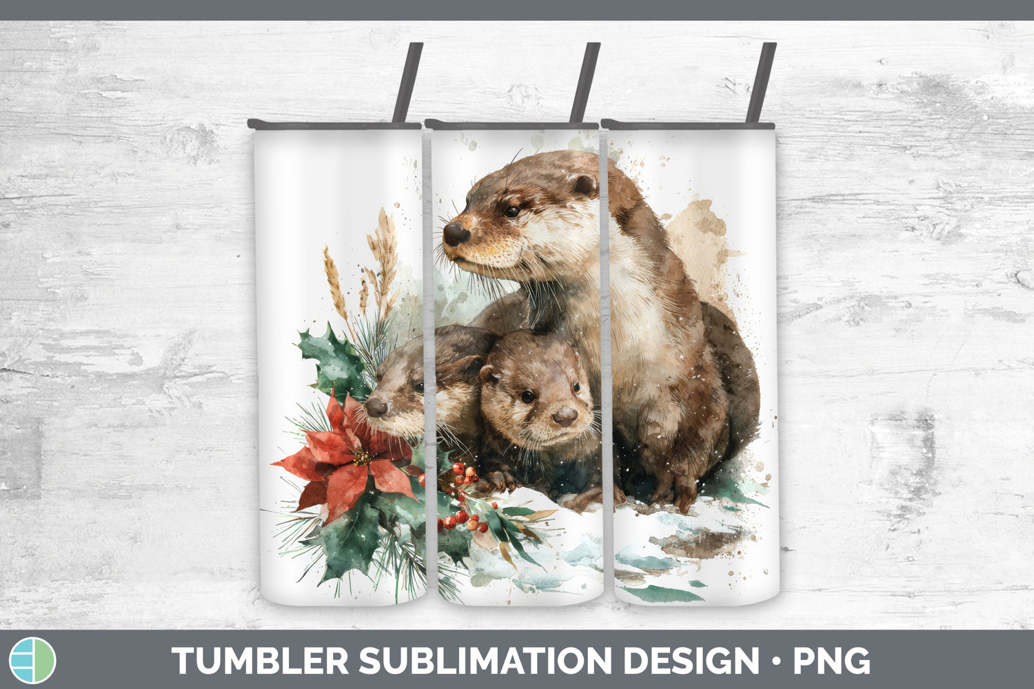Otter Tumbler Woodland Christmas Poinsettia Sublimation 20 o