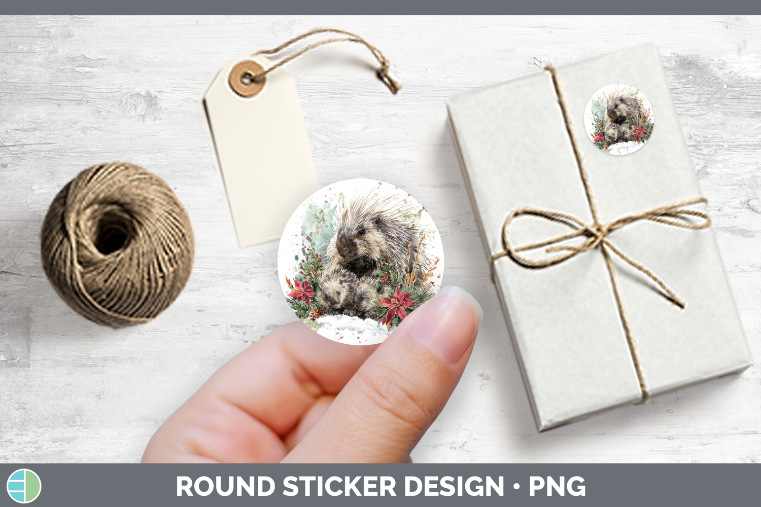 Woodland Christmas Poinsettia Porcupine Stickers | Round Lab
