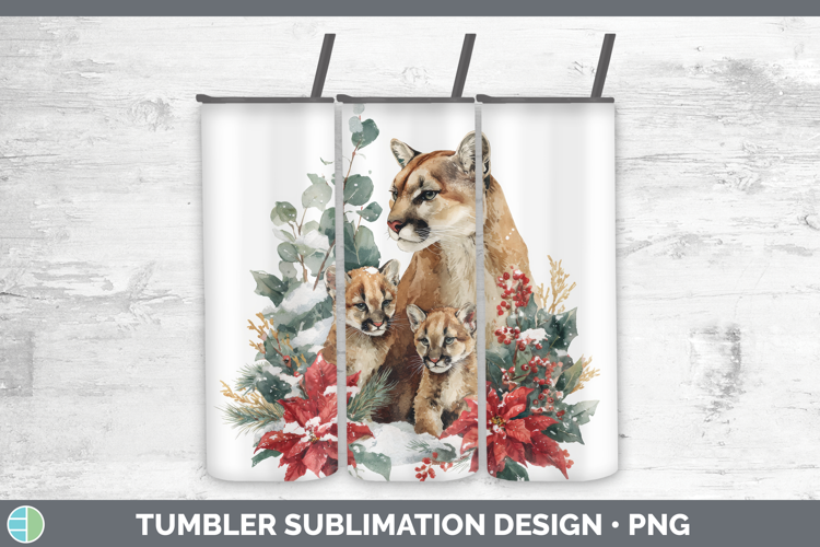 Cougar Tumbler Woodland Christmas Poinsettia Sublimation 20