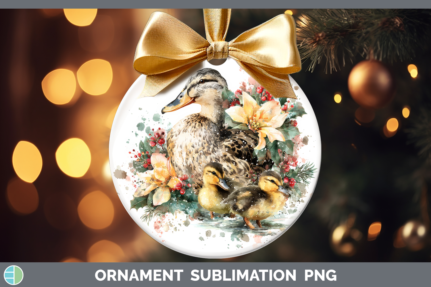 Duck Ornament Woodland Christmas Poinsettia Sublimation Baub