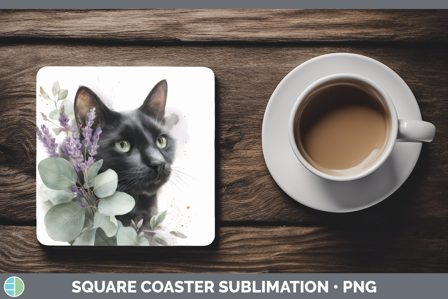 Black Square Coaster Cats Lavender and Eucalyptus Sublimatio
