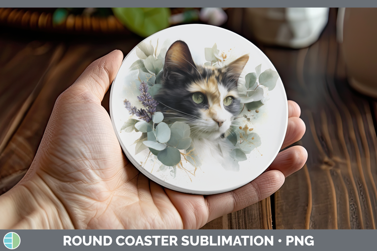 Similar Design Products to Calico Round Coaster Cats Lavender and Eucalyptus Sublimatio