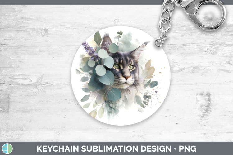 Maine Coon Keychain Cats Lavender and Eucalyptus Sublimation