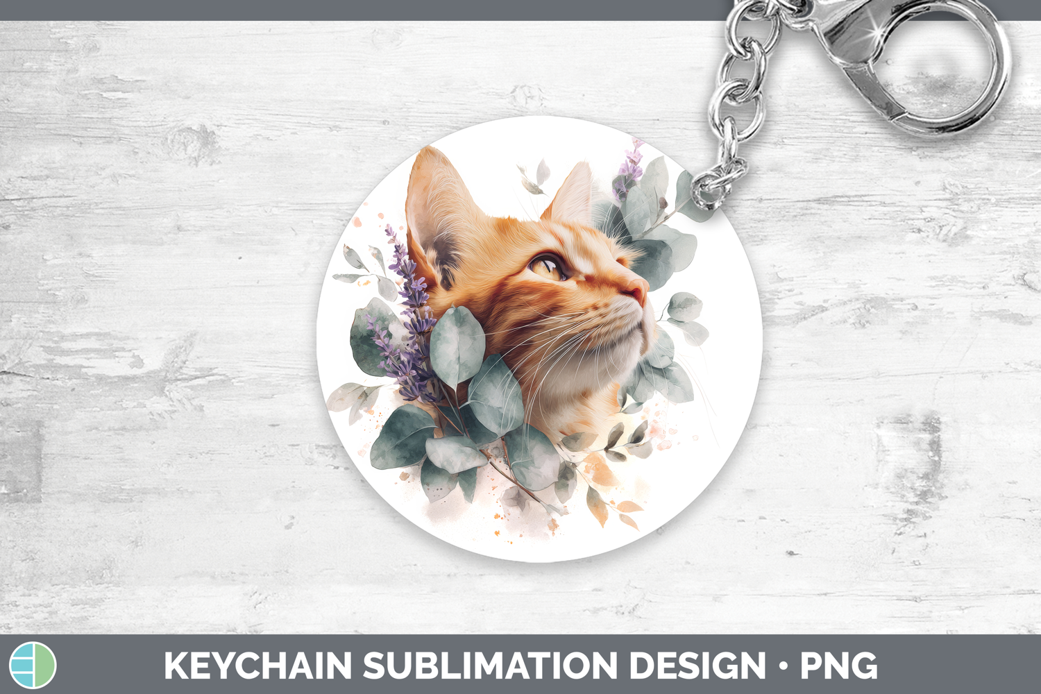 Orange Keychain Cats Lavender and Eucalyptus Sublimation Key