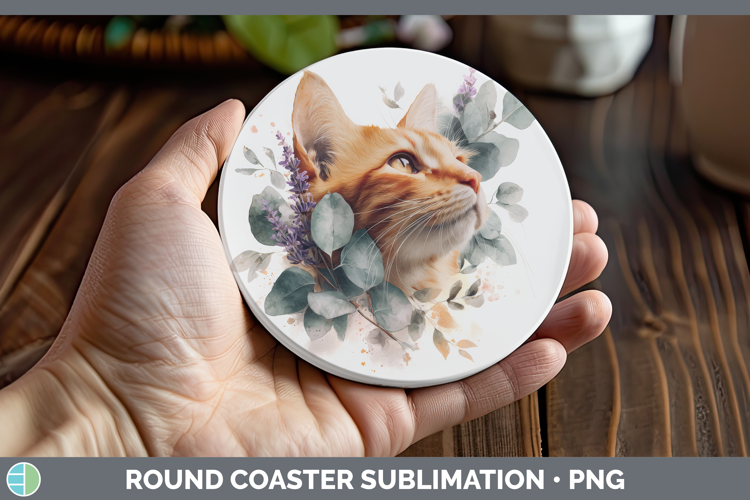 Orange Round Coaster Cats Lavender and Eucalyptus Sublimatio
