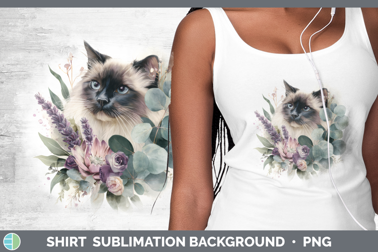 Ragdoll Shirt Cats Lavender and Eucalyptus Sublimation Backg