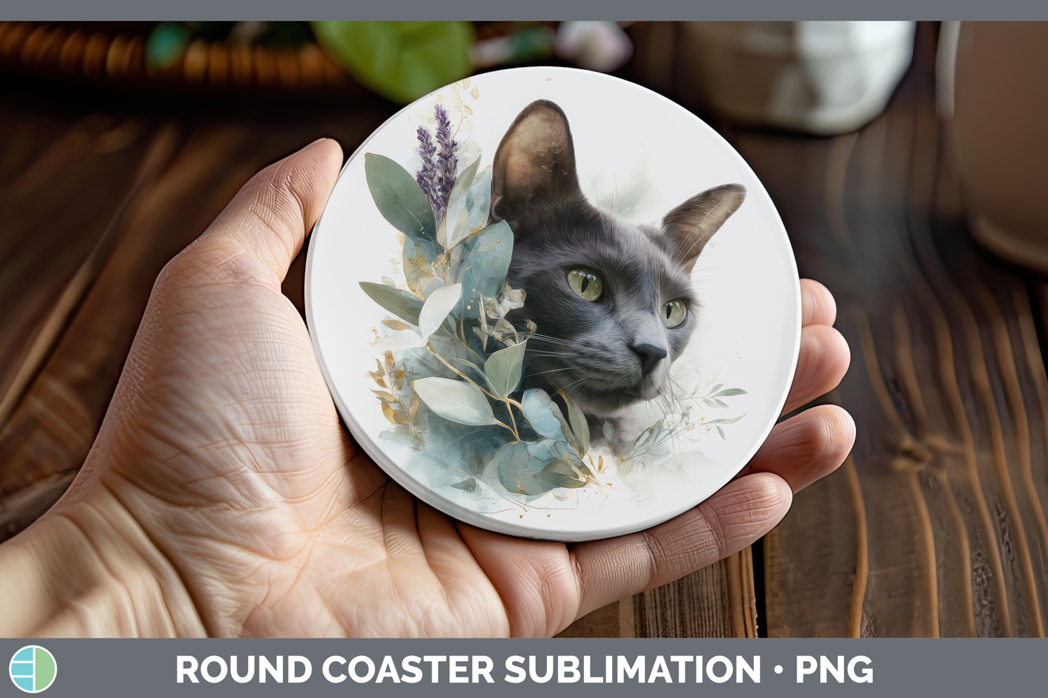 Russian Blue Round Coaster Cats Lavender and Eucalyptus Subl