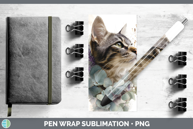 Tabby Pen Wrap Cats Lavender and Eucalyptus Sublimation Pen